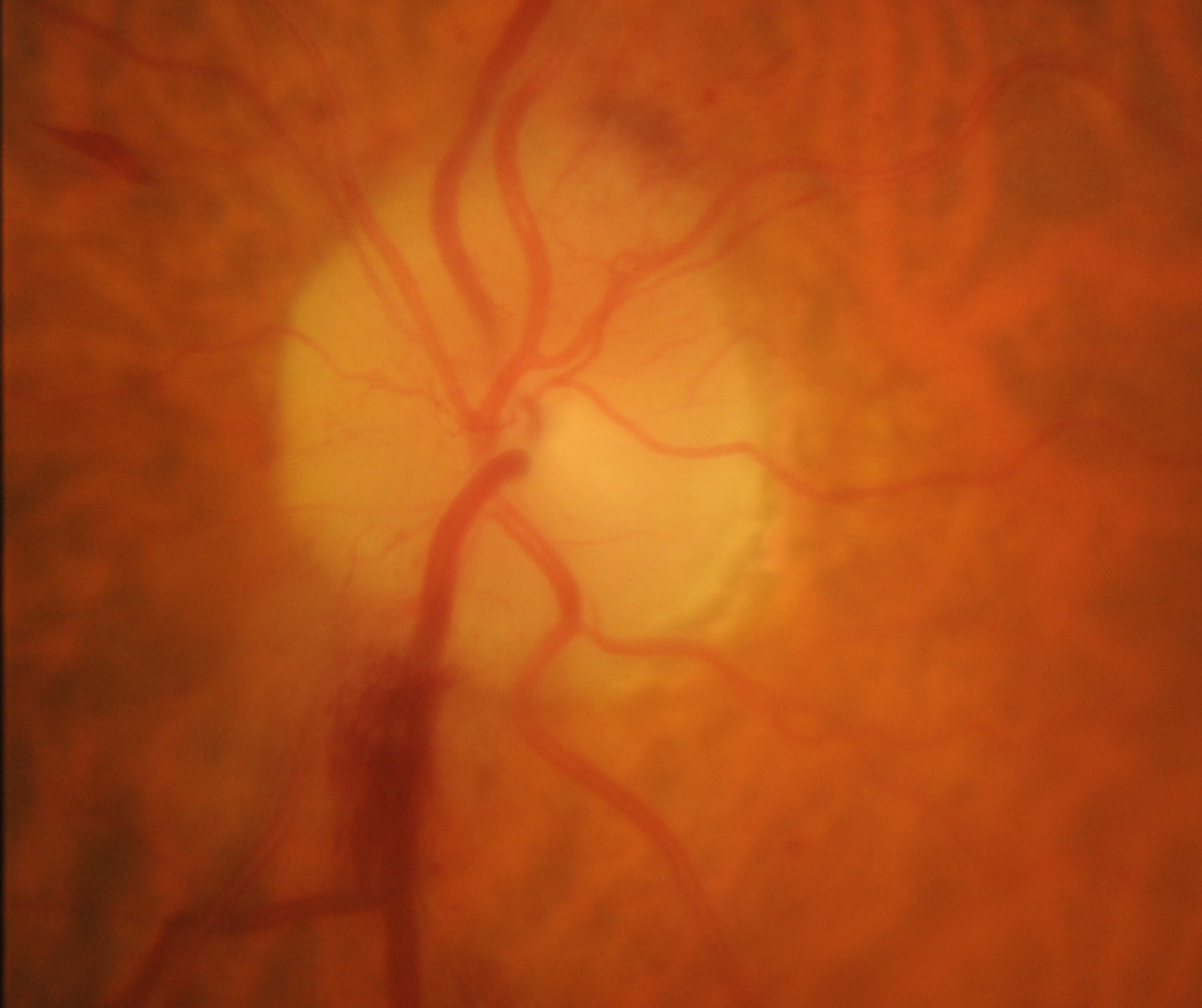 NAAION occurs in “at risk” discs – that is, discs that are crowded and have a small cup-to-disc ratio. The obstruction of the short posterior ciliary arteries cause ischaemia and axonal oedema. The swelling of the axons within a fixed space causes an already crowded disc to become more congested, compressing the capillaries and leading to additional ischaemia (compartment syndrome).
