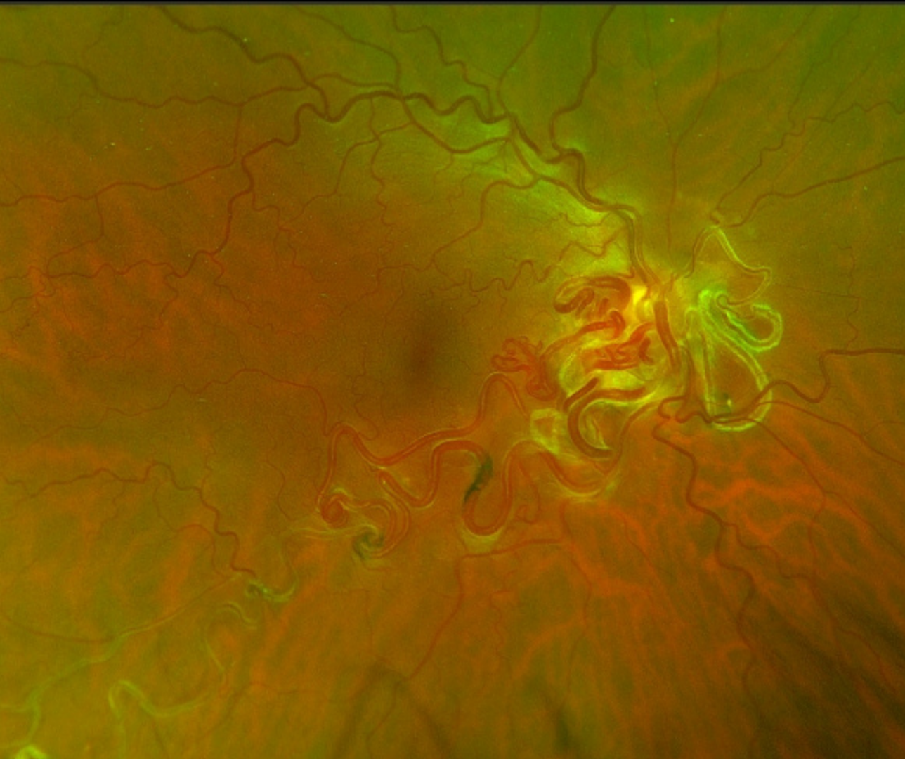 A 22-year-old male with best corrected visual acuity of 6/6 (20/20) in each eye. He has been diagnosed with Wyburn-Mason syndrome. His left eye is unremarkable so this case will focus on the right eye only.