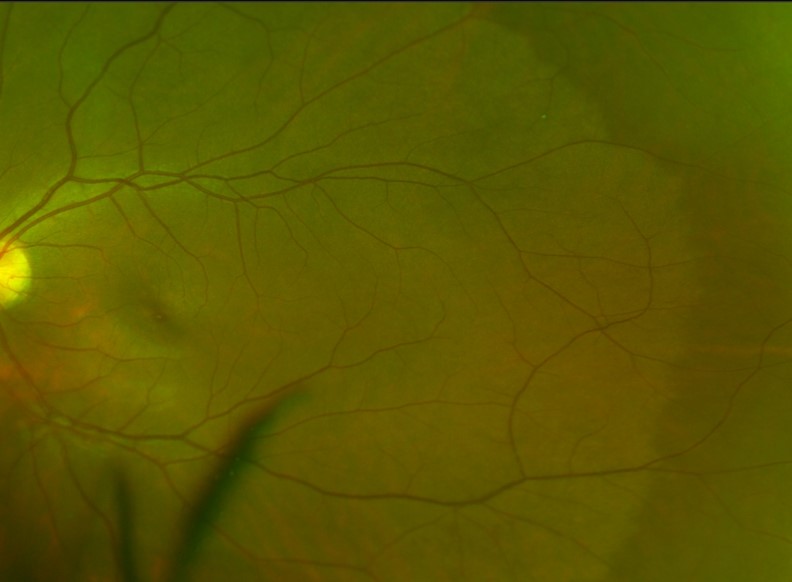 White without pressure (WWOP) appears as an opaque area of white/grey retina, sometimes with a red-brown border. The appearance and distribution of these areas can change over time.
