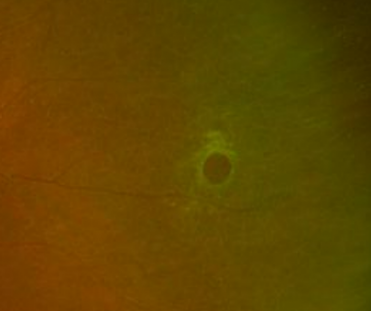 An asymptomatic 34 year old Caucasian female with high myopia and best corrected visual acuity of 6/6 (20/20) in the left eye.