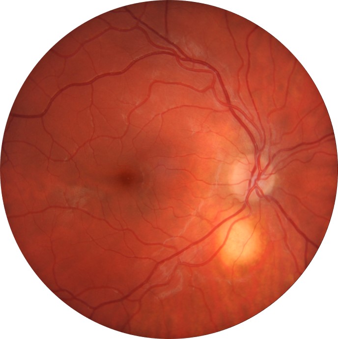 OCT EDI imaging shows a smooth, dome shaped elevation within the sclera with partial or complete compression of the overlying choroidal vasculature. Rarely, subretinal fluid may be seen.