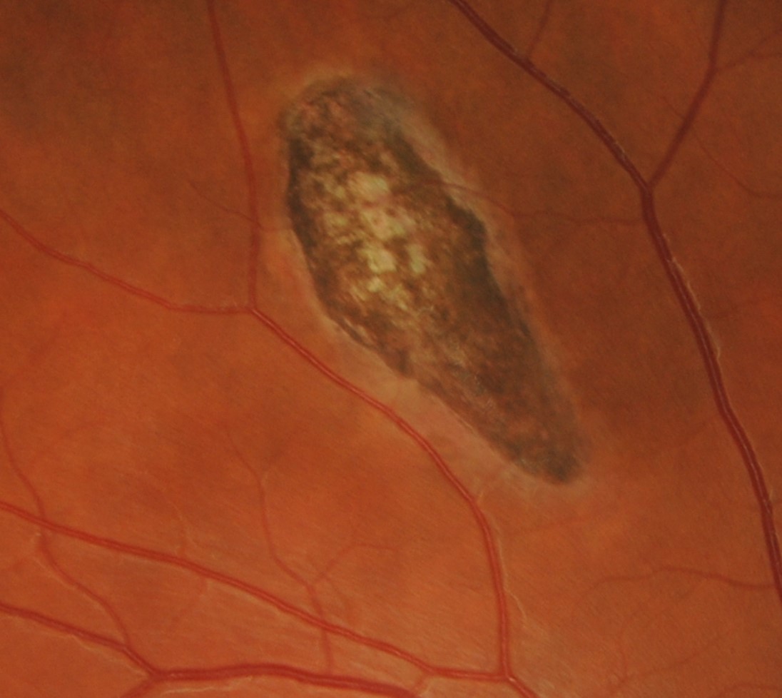 Atypical CHRPE may be associated with conditions such as Gardner’s syndrome and Familial Adenomatous Polyposis (FAP). In this condition, multiple adenomatous polyps can be found in the colon and can progress to colorectal cancer. The presence of these lesions in the retina is often one of the earliest extraintestinal presentation of this genetic disorder and therefore accurate diagnosis is essential.