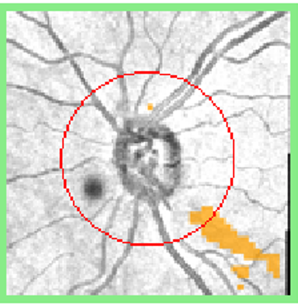 2. Progression on imaging: OCT progression analysis requires 2 baseline scans, from which later scans are compared to. OCT-based progression detection requires a significant reduction or downward trend in RNFL or GCIPL thickness.